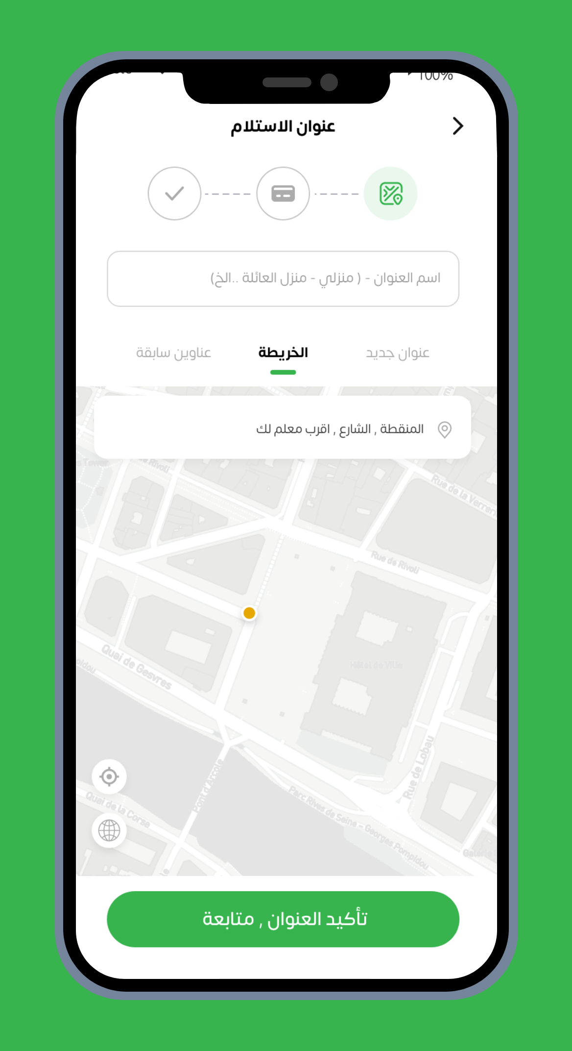 قم باستلام جميع المنتجات في طلبك من خلال تحديد عنوانك بكل سهولة من احد خيارات ادخال العنوان المتاحة داخل التطبيق